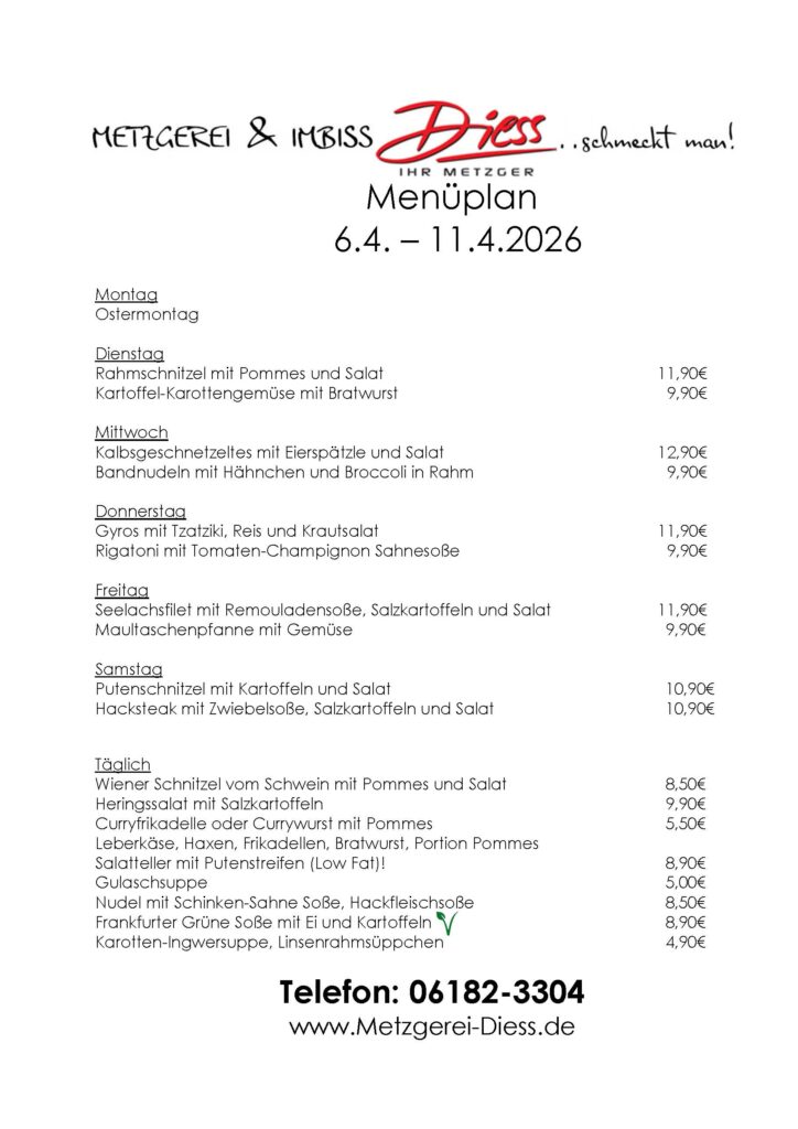 Menüplan Metzgerei Diess